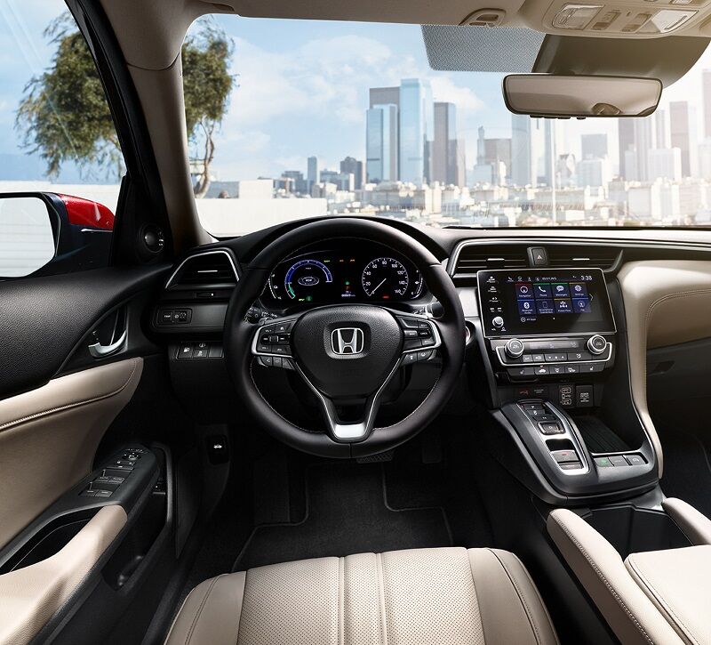 With its striking front end, the 2019 Honda Insight Hybrid makes a statement. Sleek headlights flank the flying wing grille. The traditional sedan image is offset by a beltline with a slight rise, achieving a coupe-like look. LX editions have heated side mirrors, LED running lights, and 16-inch wheels. Touring models add larger wheels, rain-sensing windshield wipers, and LED fog lamps. You can also get a moonroof. Underneath the handsome exterior, the Insight shares the Civic's basic platform architecture and ACE safety structure. The Insight wears an aluminum hood to reduce weight. Engineers also added much more sound insulation to keep noise out of the hybrid cabin. You can test this Iowa Review by taking a test drive and see how quiet the Insight really is.