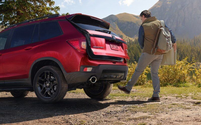 The exterior of the 2025 Honda Passport near Iowa City, IA is designed to turn heads whether you're commuting or carpooling down city streets or off exploring rugged terrains. Our Brad Deery Honda dealership highlights the Passport's commanding presence, evident in its muscular build and sophisticated styling. The TrailSport trim, for example, comes equipped with roof rails ready for cargo attachments, making it ideal for outdoor gear transportation. Finishes like Radiant Red Metallic II and Lunar Silver Metallic add a touch of elegance and personal flair to the vehicle, while standard 18-inch wheels on the TrailSport trim and all-terrain tires promise superior grip and stability. Additional features such as power tailgates and hands-free access power tailgates available on the Black Edition add practicality and convenience, ensuring that every aspect of the vehicle's exterior is as functional as it is stylish.