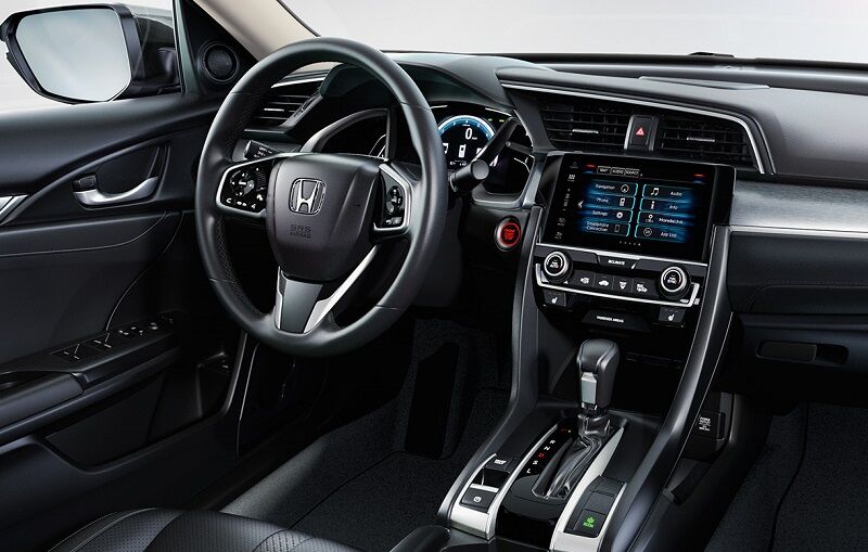 The 2019 Honda Civic continues its tradition of upscale design on the interior of the vehicle. Let's start with the dash. The first thing you will notice is the updated 7 inch infotainment screen. There is also a volume knob for the infotainment screen for easier use. The dash itself is also updated to include more stylish trim pieces and materials. There are also new seat designs that offer 2-tone styles and more upscale cloth and leather options. Additionally, the interior of the R-Type civic model offers a red trimmed steering wheel, red trimmed dash and eye-popping red sport seats. Overall, the interior of the Honda Civic is a sight to behold.